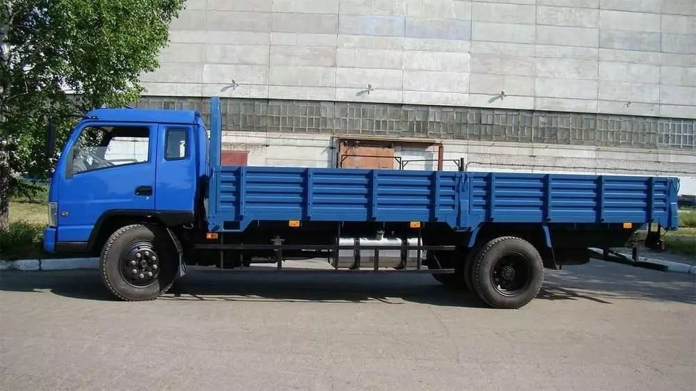 Сзади BAW Fenix 1065 есть грузовая платформа с двумя откидными бортами сбоку, передний борт естественно не откидывается и намного выше остальных. Размеры платформы 5,2 на 2,1 метра. При желании можно натянуть тент или купить вариант фургона, самосвала или крана.