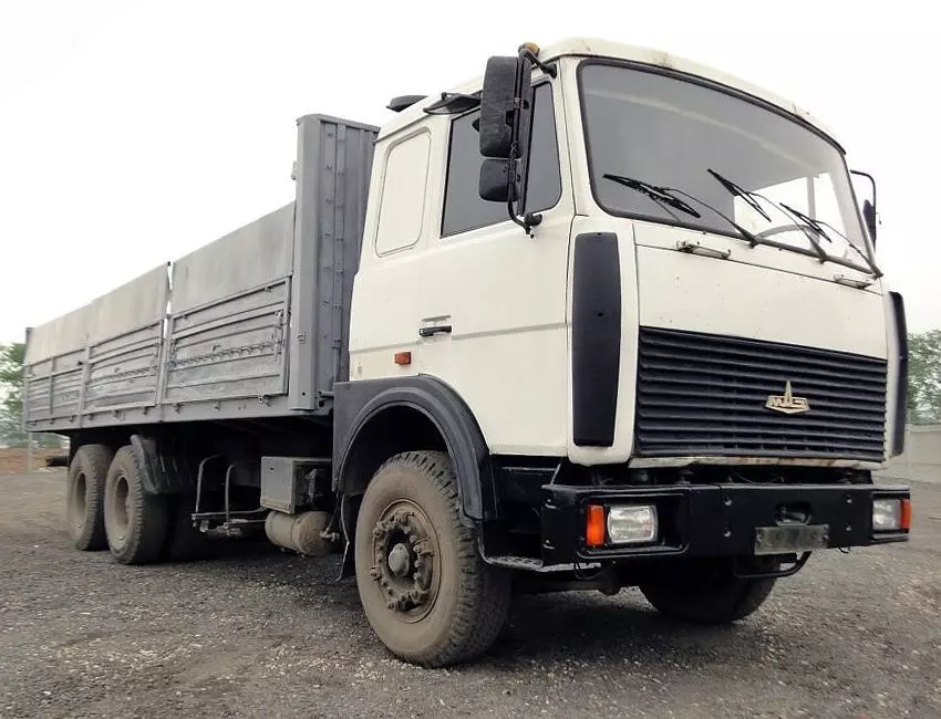 Одним из них является грузовой автомобиль МАЗ-6303, имеющий бортовую грузовую платформу и трехосное шасси с колесной формулой 6х4. Стоит отметить, что данная модель разрабатывалась с учетом европейских требований, поэтому МАЗ-6303 отличался от своих предшественников множеством новых решений и продуманной конструкцией. Еще одним показателем успеха стало то, что автомобиль позже послужил базой для создания более современных модификаций трехосных большегрузов.