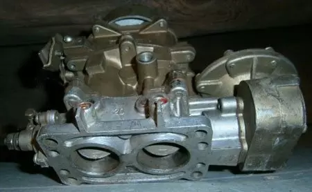 Используется для запуска холодного двигателя. Водитель вручную закрывает воздушную заслонку с помощью ручки воздушной заслонки. Воздух поступает в диффузоры только через два небольших клапана на воздушной заслонке, смесь обогащается, необходимая для запуска.