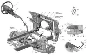 Конструкция рулевой колонки и карданного вала, возможные неисправности и методы их обнаружения описаны в документации поставщика (CSA Automotiv Madrid, S.L.), (см. примечание).