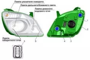 Замена ламп головного света должна производиться в следующем порядке: